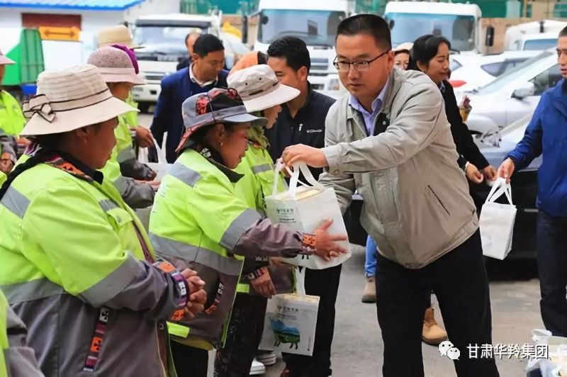 甘肅華羚乳品股份有限公司為合作市環衛工送去了公司生產的牦牛乳奶粉、牦牛乳酥油茶等總價值58000元的節日慰問品,合作市生態產業園管委會主任周文,合作市綜合執法局局長劉尕萬出席了此次活動,公司副總經理馬小平代表公司在活動現場為環衛工們送去了節日的問候,并發放了慰問禮品,祝愿環衛工身體健康,節日快樂!