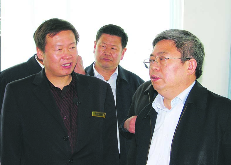 原甘肅省副省長劉永富(右)在原甘南州商務局局長張明民(中)的陪同下視察華羚公司