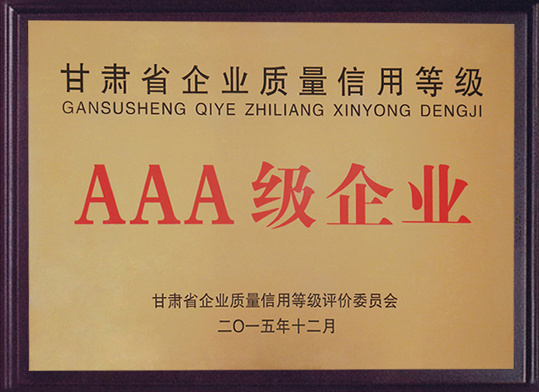 甘肅省企業質量信用等級AAA級企業
