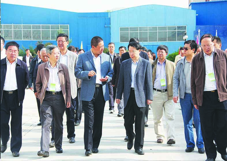 原中央統戰部副部長陳喜慶(右二)率領“同心•外院士服務團”一行在原甘南州委副書記、州長毛生武(左一),原甘南州委常委、副州長馮文戈(后排左三)的陪同下視察華羚公司