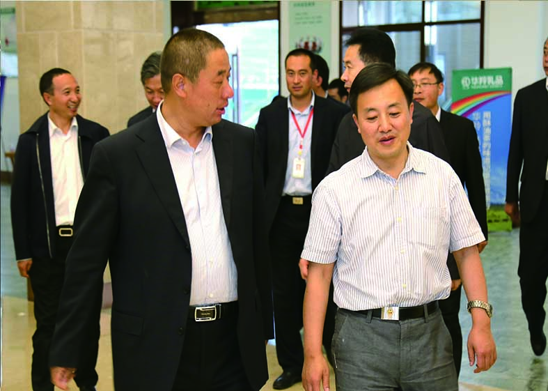 天津市人民政府副秘書長李森陽(右)在華羚集團董事長敏文祥(左)的陪同下視察華羚公司