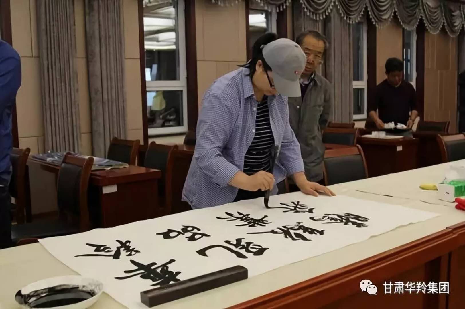 在華羚乳品公司四樓會議接待室,梅凱副院長,周明安委員,常銘主席等著名書畫家現場揮毫潑墨,場面熱鬧非凡,其樂融融。