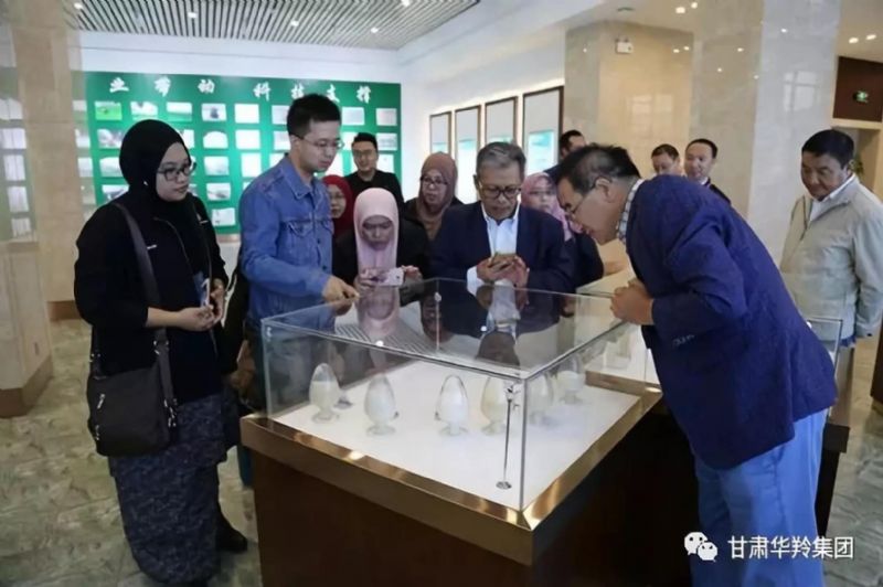 2018年7月7日,馬來西亞標準與工業研究所Dr.AhmadHazri AbRashid博士及馬來西亞化學局Ms.Norliza abd Hamid女士等一行8人組成的訪問團蒞臨甘肅華羚乳品股份有限公司參觀訪問。西北民族大學馬忠仁教授,甘肅華羚實業集團敏文祥董事長陪同。