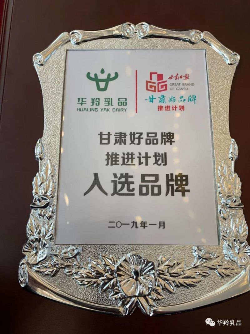 華羚乳品是甘肅好品牌推進計劃入選品牌。在2018甘肅好品牌征集評選中,甘肅華羚乳品股份有限公司榮獲“2018最具影響力企業品牌”和“2018最具影響力自主創新品牌”兩項榮譽。
