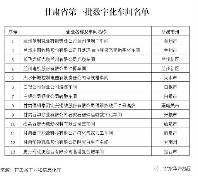 2020年12月15日,甘肅華羚乳品股份有限公司酪蛋白生產(chǎn)車間被省工業(yè)和信息化廳認(rèn)定為全省第一批數(shù)字化生產(chǎn)車間。